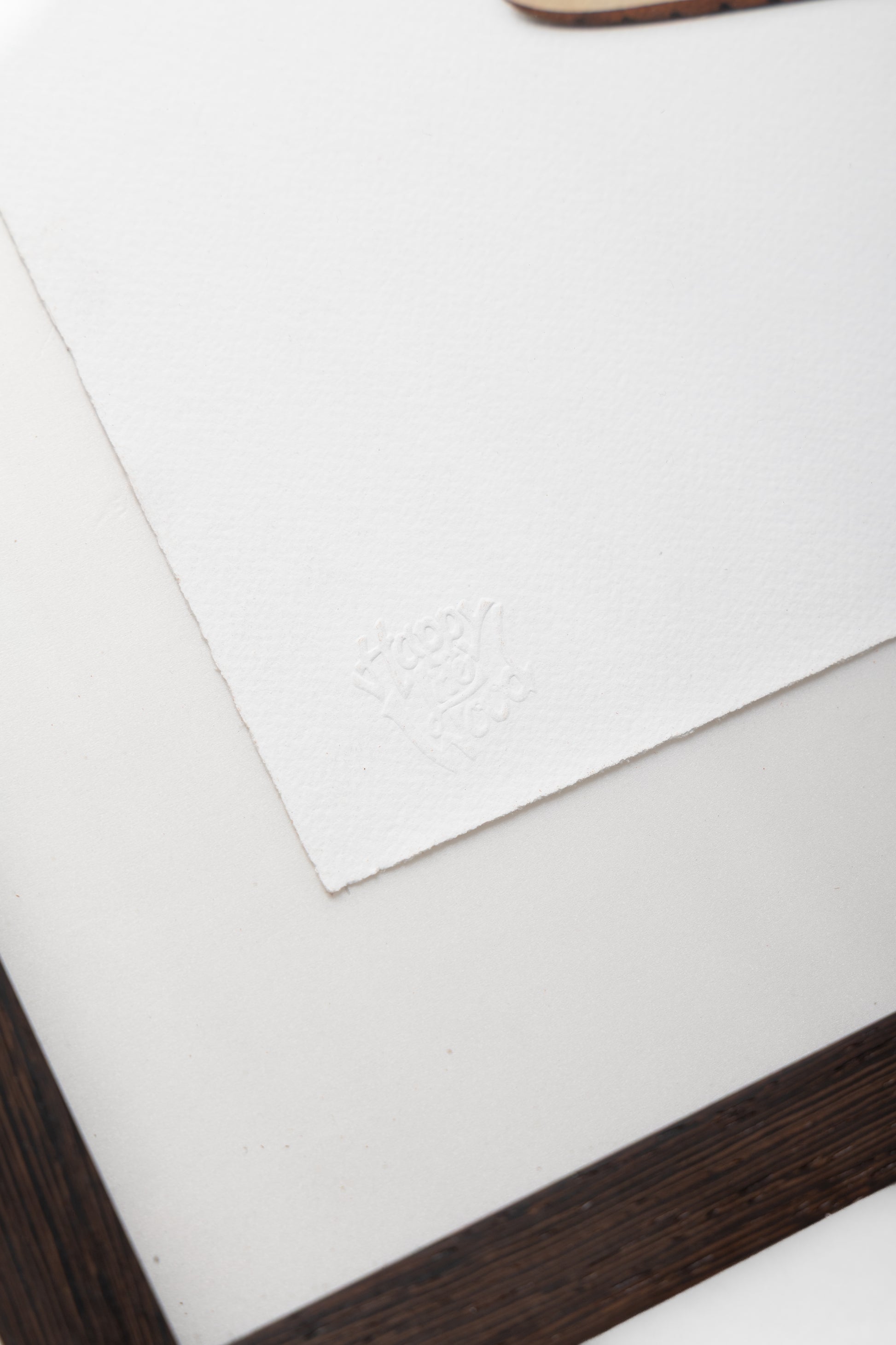 Each print features the artist's signature in the bottom right corner and the 'Happy Life Wood' logo embossed in the bottom left corner. All prints include a certificate of authenticity and are carefully packaged in the artist's studio.