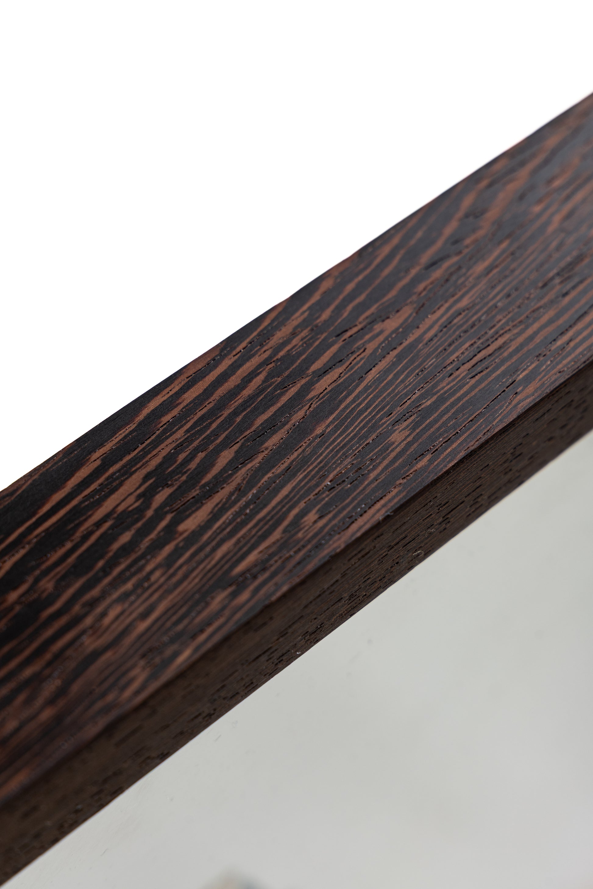 The print is float-framed in a handmade frame created by the artist using the same unstained Wenge hardwood from the original sculpture. The frame measures 22 in. x 26 in. x 1.75 in., with the print set back 1 inch from the glass, and arrives hang ready. Only 4 of these limited edition framed pieces are available. Each frame is signed and numbered on the back.